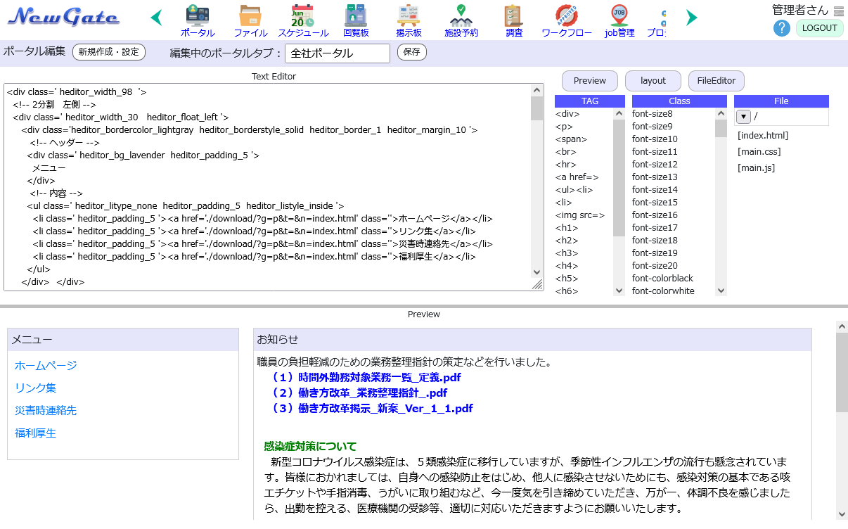 社内でお知らせしたい内容などを作成することができます。